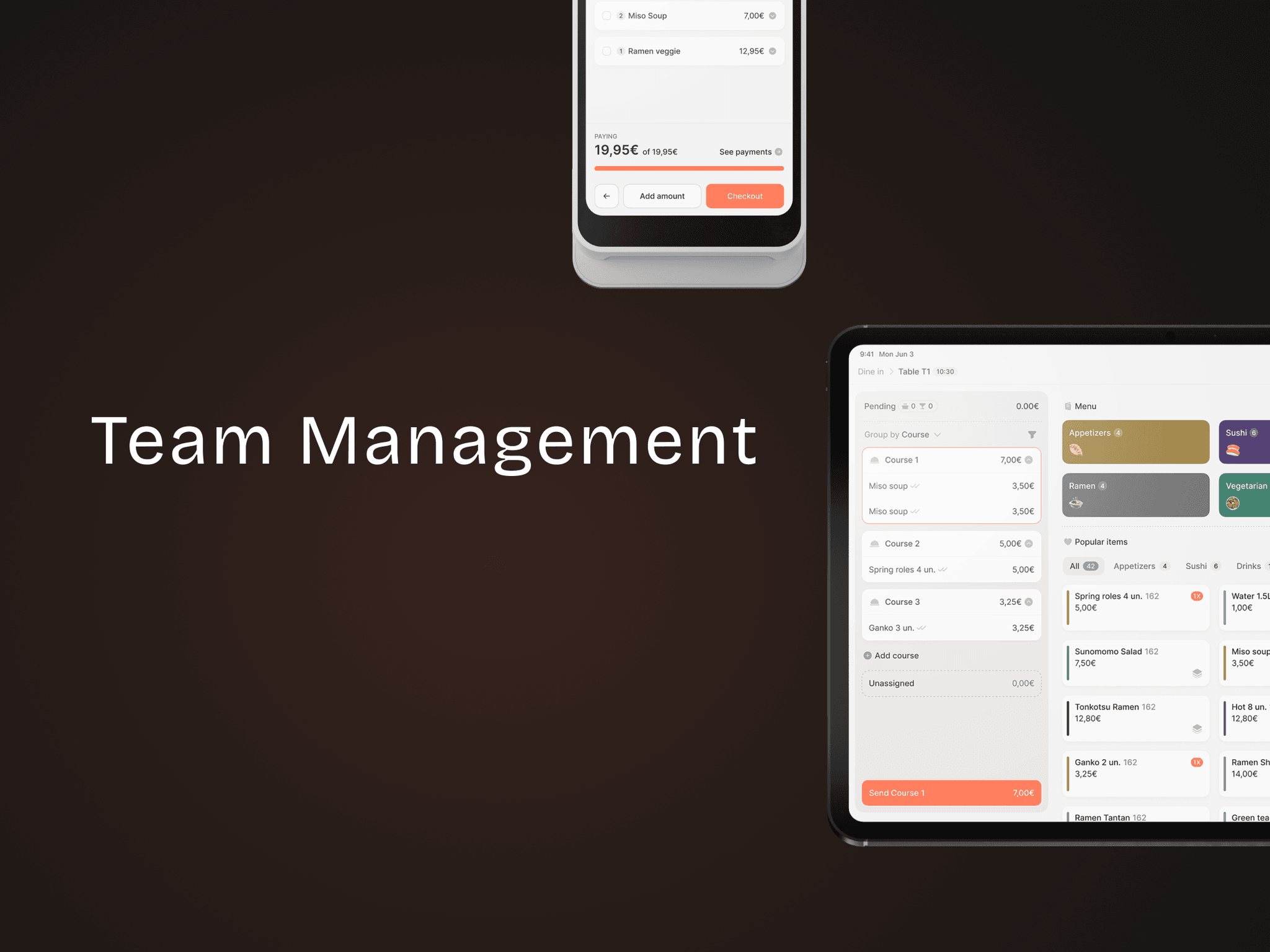 Add and manage team members, assign roles, and set access permissions across the restaurant.
